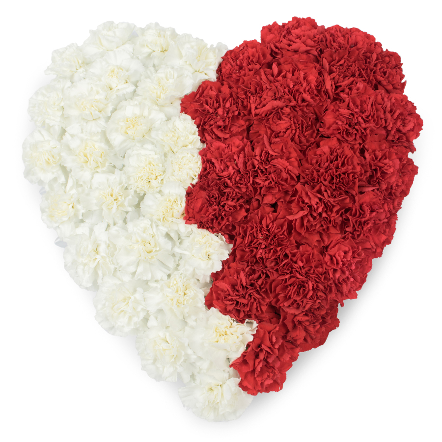 Our heart-shaped carnation bouquet combines the subtle elegance of white carnations with the vibrant passion of red carnations. Each bloom is hand-selected for unmatched freshness and quality.